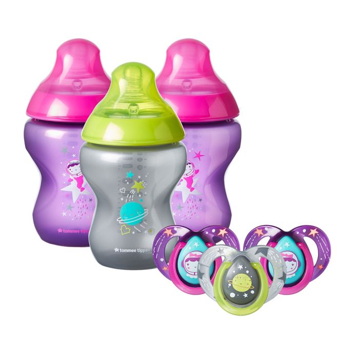 Tommee Tippee Closer To Nature 9 Oz Stage 1 Baby Girl Bottles And Pacifiers Set Bed Bath Beyond